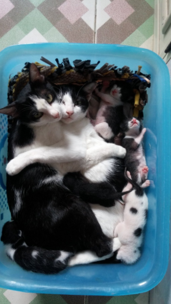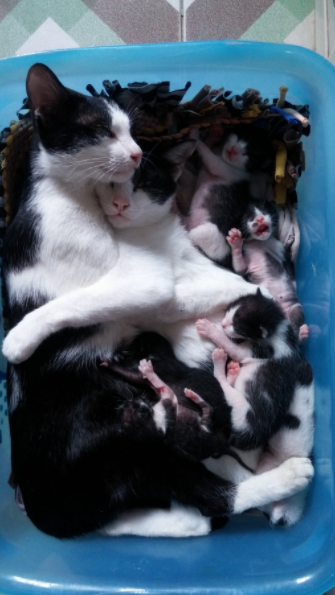 每位媽媽在生產時幾乎都經歷過生死關頭,過去醫學尚未發達時,每生一個孩子就等於在考驗媽媽呀!醫學技術演變至今,人類的生產技術越來越發達,也逐漸不需要擔心生產是否危險了。但是,動物們卻不一樣啊!雖說現在有獸醫幫忙接生,但多的是在野外流浪生產的媽媽們。國外網友ULT2AVIOLENCE在推特上所分享的照片,這兩隻賓士貓緊緊相擁,原來是貓媽媽剛生產完呀!旁邊還有五隻他們的小小孩呢~