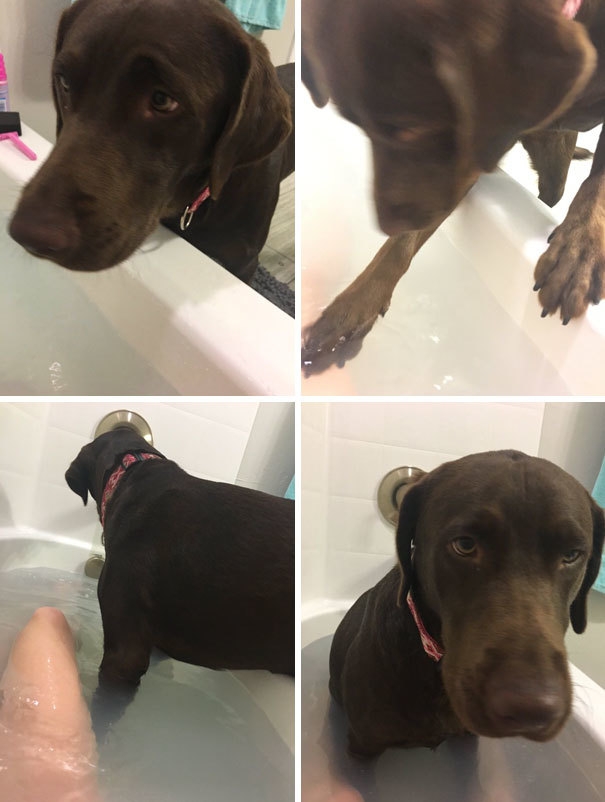 洗澡時狗狗怕主人溺死,硬是要進去保護他?!?!