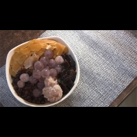 天氣熱來碗冰,不過這冰怎麼一片片,彷彿雪片,原來這叫黑糖片冰,大口咬下口感清脆,一碰到舌尖就瞬間化開,QQ黑糖粉圓、粉粿,滿口焦糖香,還有包入紅豆的相思圓。