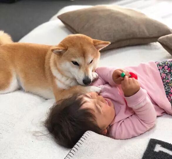這隻柴柴名叫Mogu,從小陪著小主人一起長大,每當小主人睡著Mogu都會立馬靠過去,一隻手還要搭在小主人的胳膊上才安心。