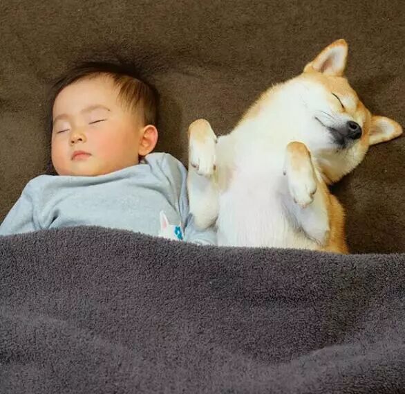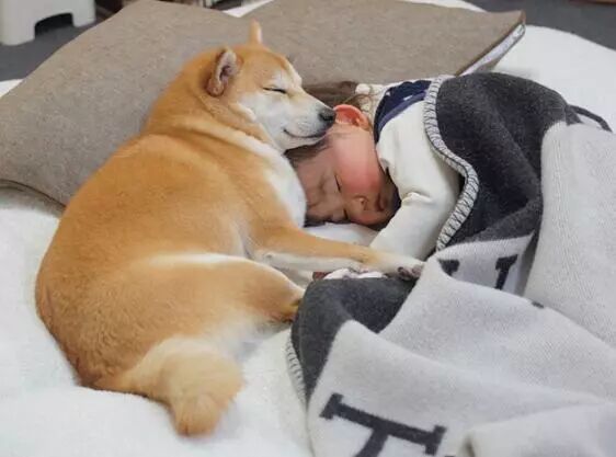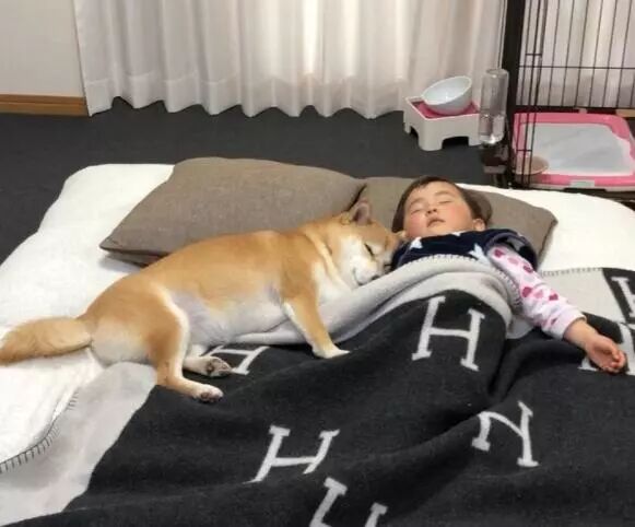 前幾天看到一張小女孩和柴柴熟睡的照片,就被萌到了。