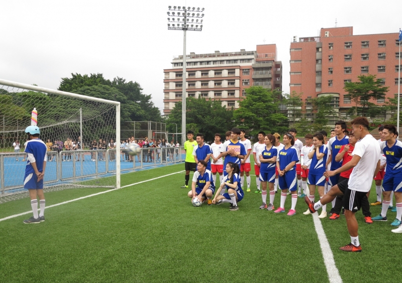 ,為FIFA認證最高標準的兩星認證人工草皮球場,高規格場地上看銘傳大學足球隊同學示範「越位」等足球相關戰術與術語,使得大家躍躍欲試、熱血沸騰,主持人胡瓜便決定來個趣味大挑戰來考考中華隊隊長-陳柏良的踢球技術,胡瓜拿起大垃圾桶走向球門邊,只要將球從遠處踢進便能獲得趣味挑戰的獎金,這種小case的挑戰當然難不倒我們中華隊的隊長,眾人驚呼連連,各種挑戰一關比一關困難!!