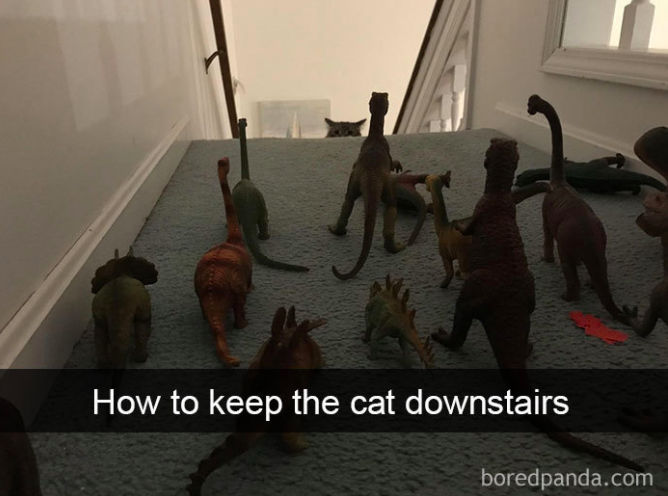 如何防止貓咪上樓,我想這位鏟屎官找到方法了!恐龍大軍!