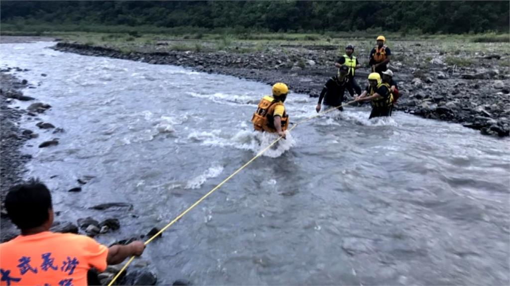 因為實在太暗,消防隊員只能靠著頭上的探照燈,確認受困民眾位置,7月1日下午4點多,台東消防局獲報,有3位民眾受困浸水營古道,立刻出動救援,原本有派遣5輛吉普車,但連日的大雨,把河床簡易道路全部沖毀,消防隊只好徒步,跨越水深1公尺的河川救人。