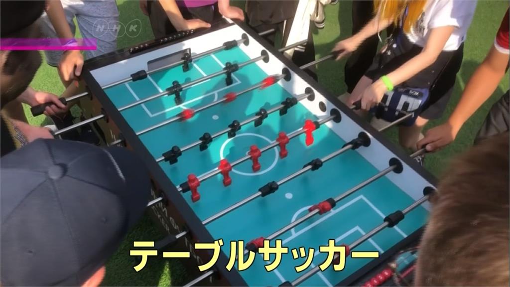 來到位於莫斯科的紅場前,讓來自世界各國的加油團們,玩到忘情的就是這個手足球。