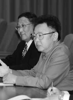 圖說:金正恩的父親金正日總書記。身旁為外務省第一副外相姜錫柱,攝於2002 年9 月17 日。