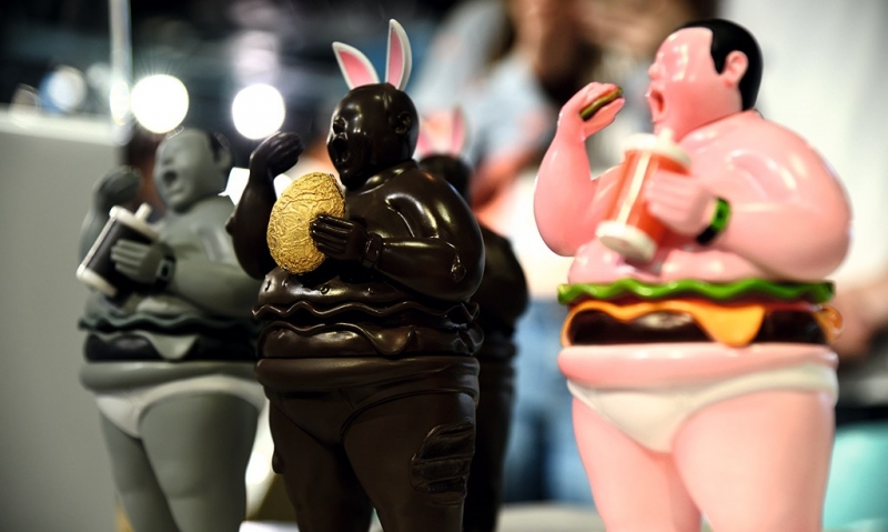 成立不久的 AE WORKSHOP,其 THE FATTIE 系列近年可說相當有人氣。那肥得有如相撲選手的大男孩背後想談的課題為執戀,「他很喜歡吃漢堡,至最後自己變成了漢堡。我們持續邀來不同背景的單位聯手創作 FATTIE,打破大家對玩具的想像。」