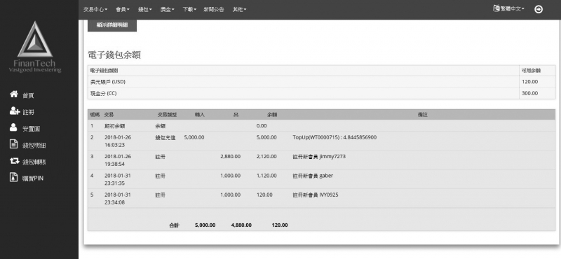後台的資訊都非常的齊全透明,例如所有的資金明細都記錄得清清楚楚,當然還包括過往的資金流向。