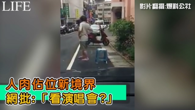 台灣三寶,無所不在!在台北開車最麻煩的事情之一,莫過於找停車位了!然而碰到人肉擋車早已不足為奇,然而事主居然碰到更絕的!直接放個板凳坐著卡位,不少網友怒批:「是在看演唱會嗎?」