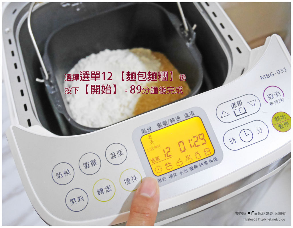 就先選擇「選單12」的行程,單純讓麵包機幫我們製作麵糰及完成第一次發酵。