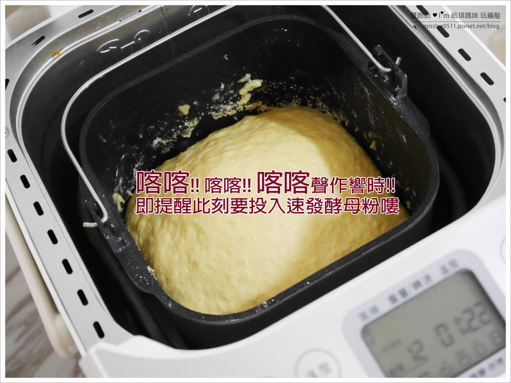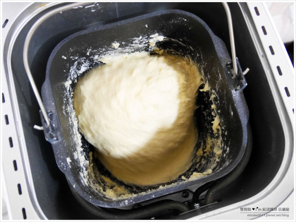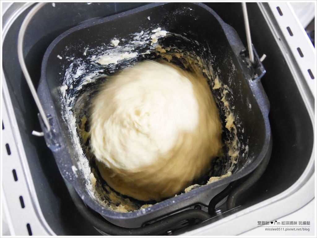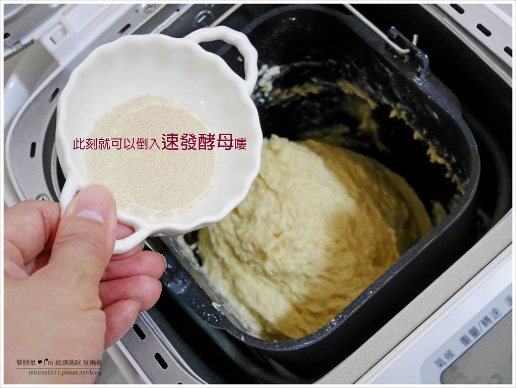 此時速發酵母我則是沒有一起投入,因為聽說這速發酵母很怕鹽巴,會影響發酵!