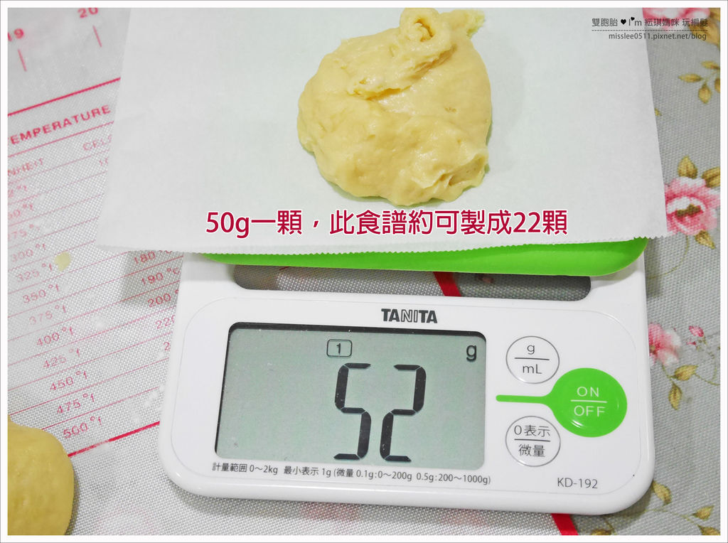【注意】烘焙紙最好能滿滿的溢出烤盤,因為麵糰會長大!