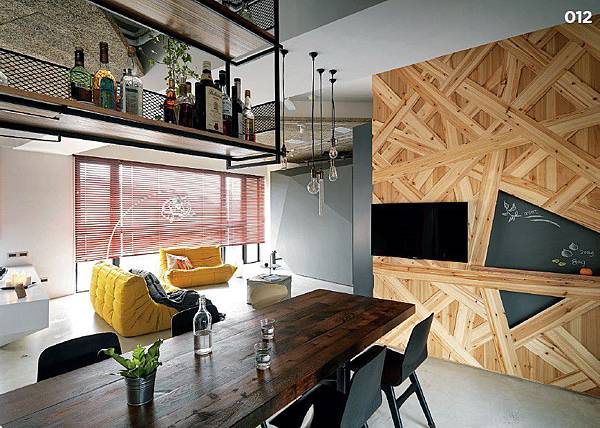 TIPS〉大樑常成為空間的無形壓迫,運用原木裝飾則能與磚牆融合,創造有趣的牆面。