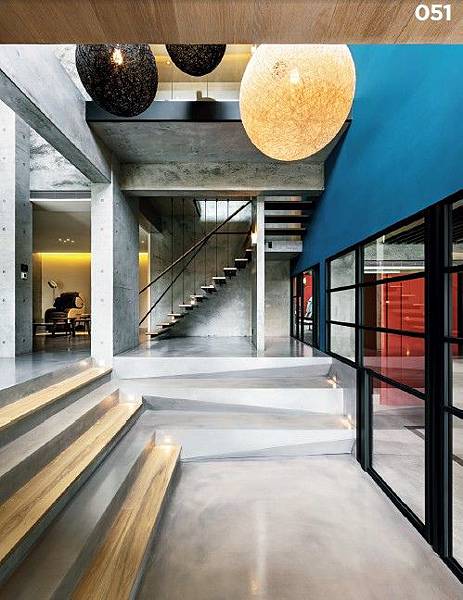 TIPS〉設計師於玄關矮梯以折角稜線做處理,光色映照時,展現不同角度的色澤變化效果。