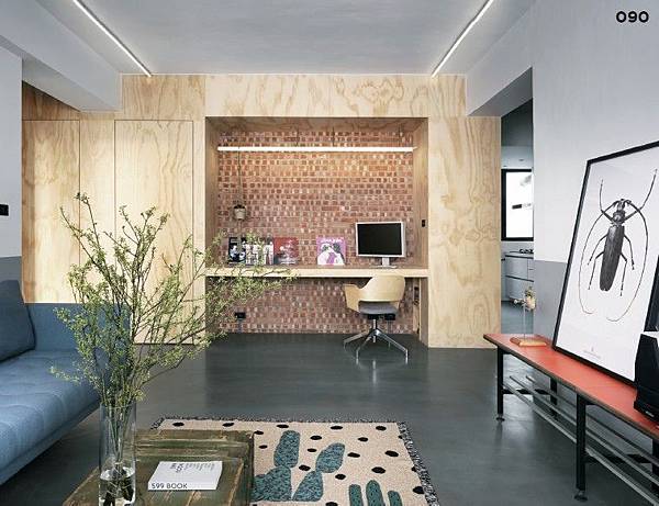 此案空間以最樸質的素材來呈現屋主的生活想望,考量屋主懷念舊時代的空間元素與預算需求,設計師運用松木合板木門片,和未施粉光處理的磚牆材質框構工作區,帶出懷舊風情的生活感。圖片提供© 兩册空間設計