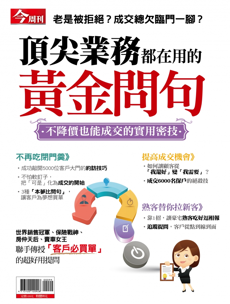 例如,銷售企業教育課程的業務可以對企業客戶說:「我們都知道,企業最重要的就是人才,尤其是把『對的人才,放在對的位置』很重要,才能發揮團隊最佳戰力,您同意嗎?」銷售健康食品的業務也可以提出:「我們工作辛苦打拚,都是為了更美好的生活,而健康更是一切的財富,您同意嗎?」