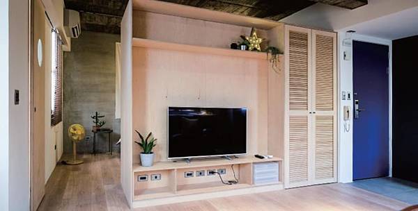 樺木夾板打造共享機能櫃牆: