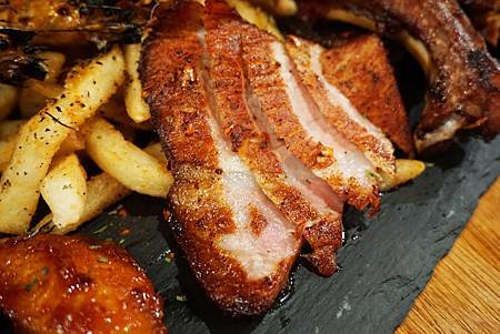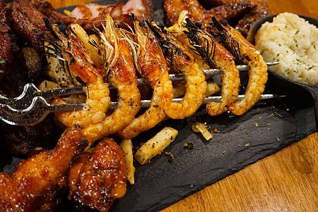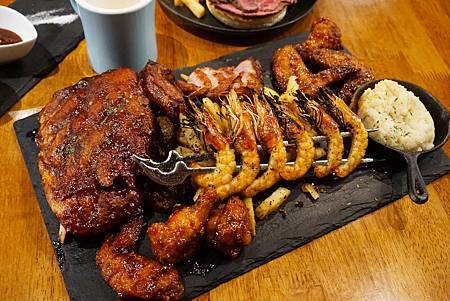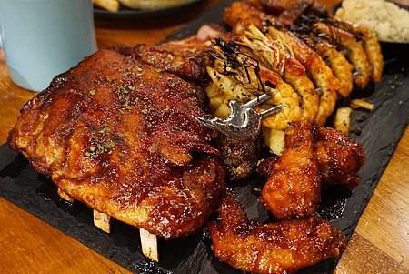 這次Ashley一次貪心的搭配了自家煙燻炭烤豬肋排、黑豬上蓋肋眼、美國骰切小排、帕瑪森蒜味烤蝦、黑松露海鹽薯條和韓式辣醬雞翅 。