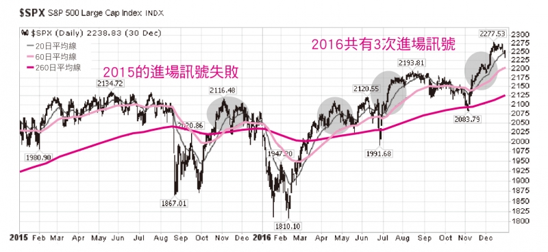 這兩大類股中,金融類股的漲幅較多(從2009年3月到9月,漲了一倍有餘),科技類股的漲幅較少(同段期間只漲了60%左右)。但以均線來看,科技類股ETF 早已進入多頭排列,金融類股ETF 卻才剛站上年線而已。由此可知科技類股較抗跌,因為2008年的股災是「金融海嘯」,重災區是金融類股,科技類股受傷較輕,均線沒被往下拉扯得那麼嚴重,因此股市一反彈它就更快地重返多頭排列了。相反的金融類股受傷較重、均線被往下拉扯得相當誇張,就算股市反彈讓它漲了一倍有餘,卻也不足以進入多頭排列,只堪堪能站上年線而已。而果然股市會說話,我們現在都知道金融類股自2009年後面臨了比以往更嚴苛的監管,各大投行綁手綁腳、施展不開,直到川普上任後才在研擬放寬金融監管。而2010年至2016年的各類股漲幅中,金融類股也輸給科技類股好大一截。風水輪流轉,在川普當選不久的那一次進場點中,就輪到金融類股當道了。要特別說明的是,我們要找的不是「最抗跌」的類股,不用刻意去計算哪個類股的跌幅較小,我們只要找出「相較起來更抗跌」的類股就好了,如果兩個類股ETF 的線圖看來差不多,都進入了多頭排列,那這兩個類股都能通過審核。然而,光是前三項挑選還不夠,我們還需要「E」。