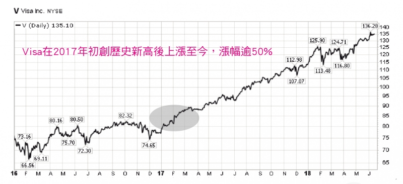 (2)Visa在2017年初創歷史新高後上漲至2018年,漲幅逾50%
