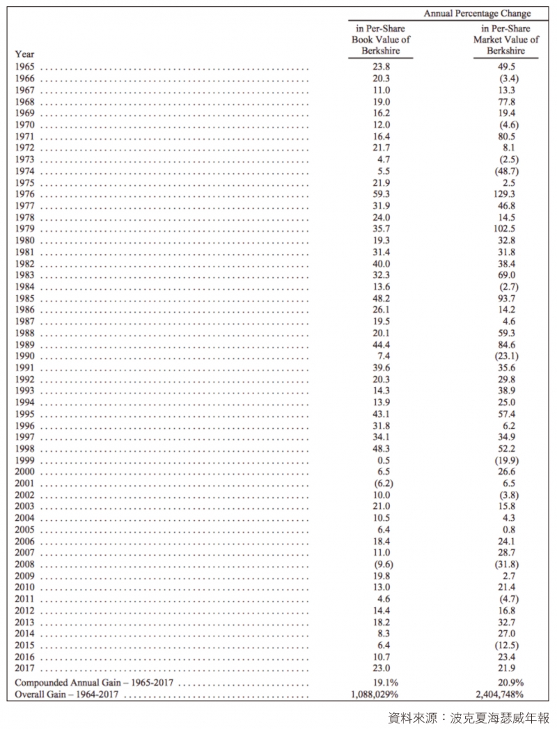 巴菲特的投資成績一點也不穩定,但長期下來非常驚人。