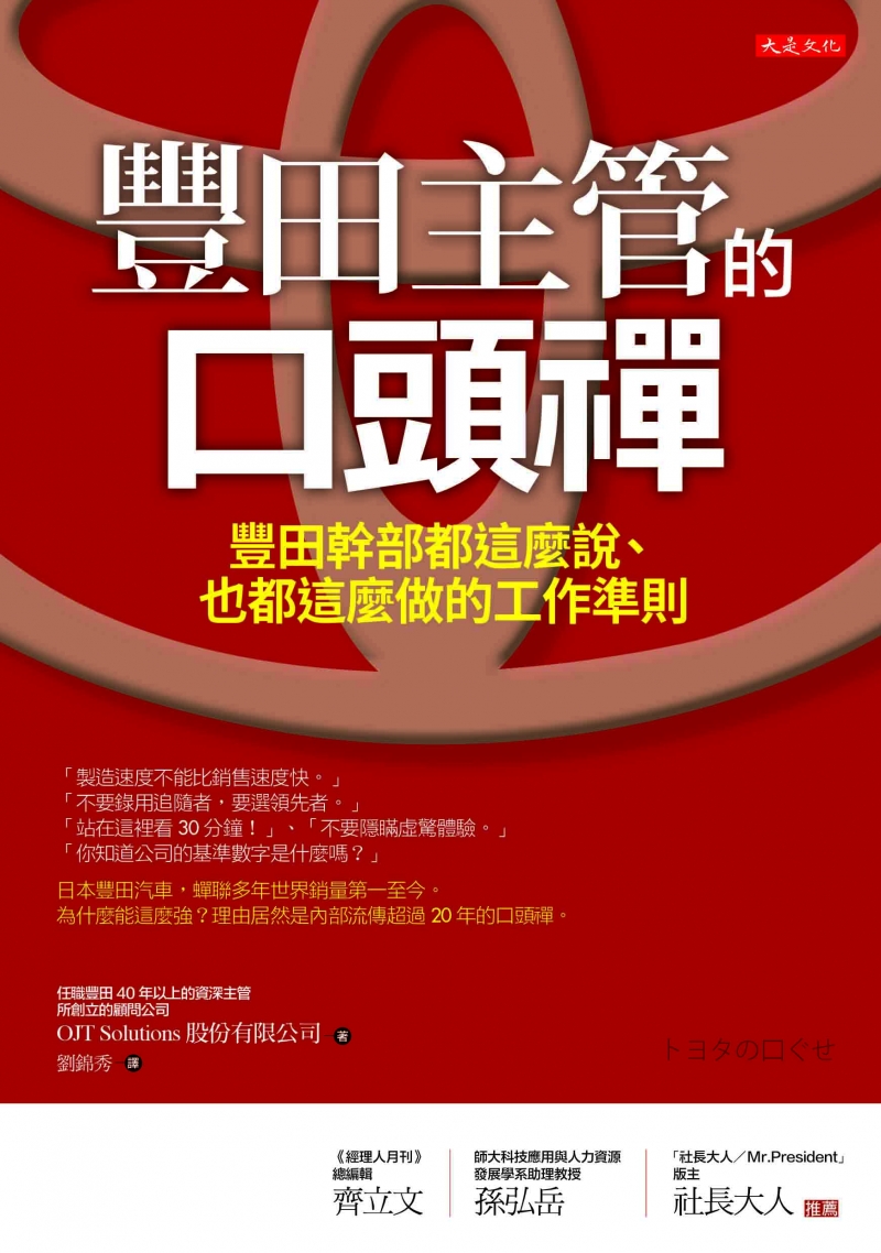 本文摘自大是文化《豐田主管的口頭禪:豐田幹部都這麼說、也都這麼做的工作準則》
