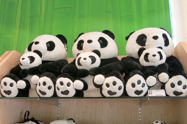 禮物館全是以熊貓為主題的產品,以大型毛公仔最受歡迎。