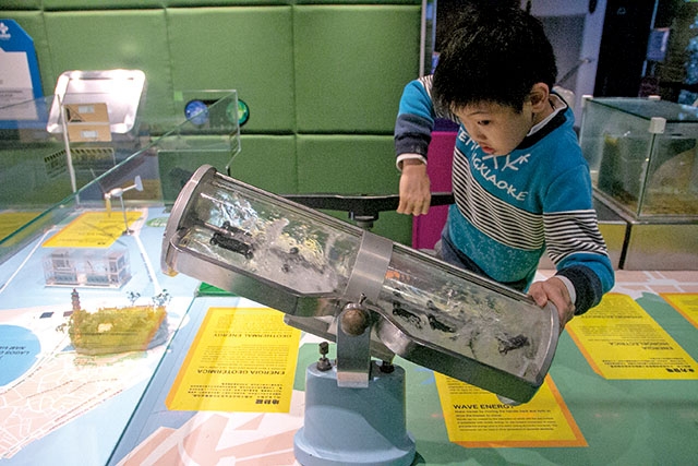 這展覽廳專為小學階段的兒童而設,擺放著一系列關於水力的設施,小朋友可以從中學習不同的水力知識。
