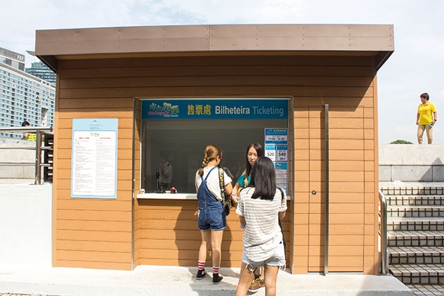 想玩水上單車,要先在售票處買票,後領取救生衣方走到碼頭上船。