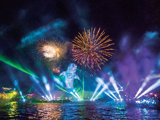 晚上8時有大型煙花匯演,加入海洋主題燈光秀,十分精彩!