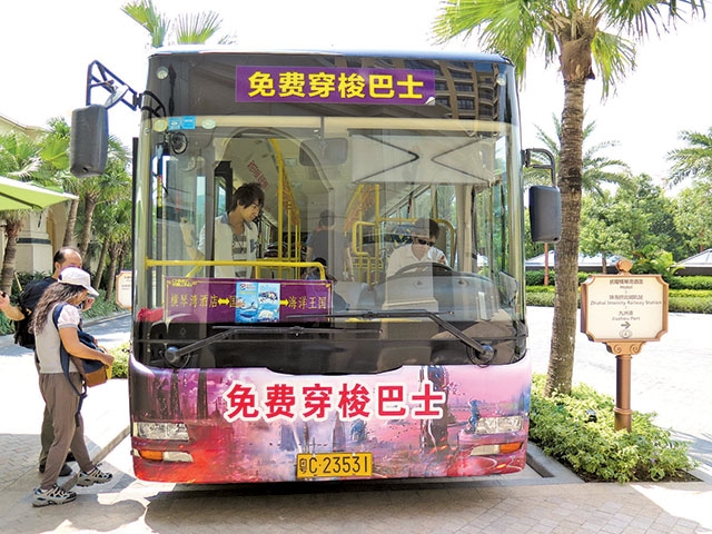 入住酒店的客人,可乘坐免費穿梭巴士去園區門口,只需5分鐘便到。