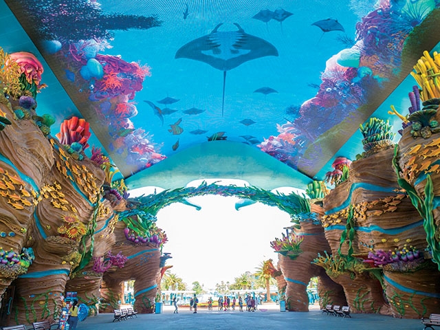 入口處是巨型魔鬼LED超大銀幕,抬頭會看見大群魔鬼魚對你微笑。