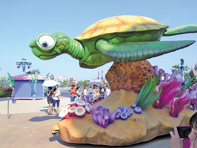 各大卡通人物在樂園遊走,小朋友都會把握機會合照。