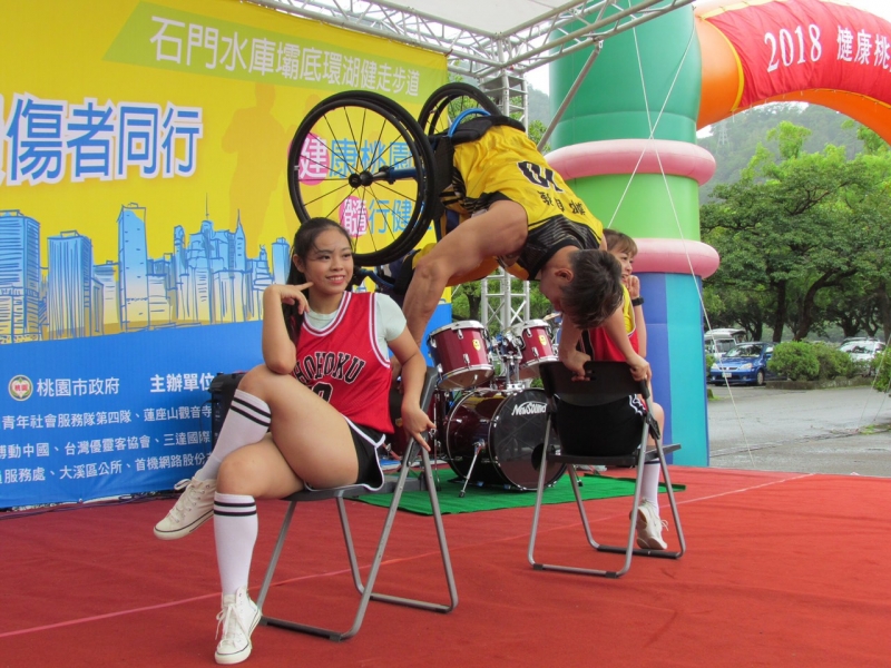 無畏山竹颱風的威脅,9月15日各地的脊髓損傷者齊集在石門水庫,進行一場輪椅族的健走活動。在目前全民瘋路跑的風氣下,由脊髓損傷潛能發展中心發起這項相對較為緩和的健走活動,目的是為了讓脊髓損傷這樣的重度障礙者維持良好的體適能,以期延緩老化並降低疾病的風險。同時廣邀社會大眾參與,與脊髓損傷者同行,加強一般人對身心障礙者的互動、理解與同理心。活動邀請到桃園市政府首席顧問黃適卓、社會局古梓龍局長、大溪區公所黃睿松區長等貴賓蒞臨指導,共同推廣「健康桃園」成為身心障礙者的友善城市。