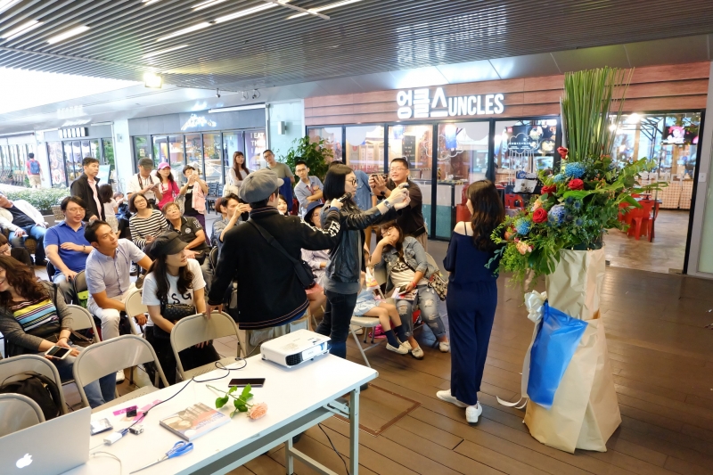 本次書中針對自製濾色片與便利商店小白傘等生活常物運用有諸多介紹,現場黃天仁也一一親自搭配OPPO手機示範,從如何取景、構圖、判別現場光源到如何用手機內建手電筒進行補光,甚至使用活動現場的迎賓花籃拍出雜誌大片效果,都讓現場粉絲大感佩服!