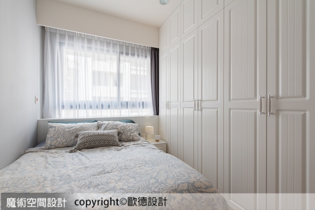 ▲主臥全室採用歐德系統板材及櫃體,創造充裕的收納,線條簡約的鄉村風妝點出浪漫唯美的休憩空間。