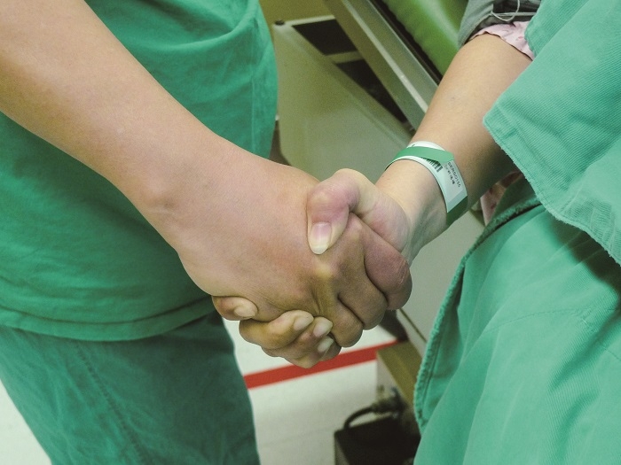 到了她生產當天,婦產科同事呼叫我快到產房,她快生了;當到達時,我發現她先生、男方家屬及女方家屬排排站在等我。我好奇的問她先生,「你應該進產房體會和一起加油的啊,」他們全部都異口同聲請我進產房,她就握著我的手生了第一胎。感受著她生產的痛及用力握手,是非常特殊的經驗,婦產科的同事也特別留下我們握手一起努力的照片。兩年多後,第二胎也是握著手順利的生產,之後看著日漸順利長大的一男一女小孩打打鬧鬧,心裡的擔心放下不少。經過好多年,最近她回診說,「不小心有了,」看來我又要擔心一次了!雖然在這個過程中充滿了困難,但在記憶裡總是非常的深刻。緣分的記憶常常來自於困難而且多變的遭遇。