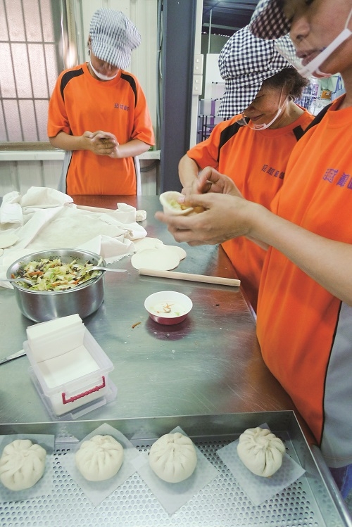 為了這小舖,我和協會的朋友們不斷的討論饅頭、包子,並且到許多著名的包子店試吃包子饅頭,對於麵糰其中的酵母、老麵、麵粉及發酵過程,有更進一步的了解。在眾多不同的包子中,要做出令人感動與懷念的內餡也是相當的挑戰,於是請教Franco 大廚和大家試味道;在餡料的製作上,包括洋蔥的炒香及其甜味,蔥、薑帶給肉去腥及香味,豬肉部位要如何選擇及肥瘦的比例等等,都是學問。想要能夠自立自強,就要先把產品做好,從手工到半自動化,到量產及行銷。