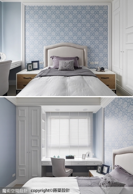▲另一間女孩房運用有限空間含納女孩們的需求,合理鋪排機能,新古典裝潢的萌萌臥室散發溫馨氣息。
