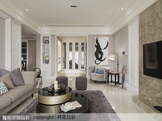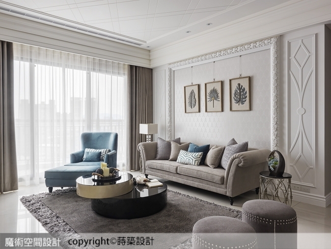 新古典風格著重細節刻劃,品味出色,寯永耐看,在此基礎上,蒔築設計將家庭成員個別及共同需求代入,並且以其設計團隊極為深厚的設計功力深蘊新古典高雅迷人的生活厚度。