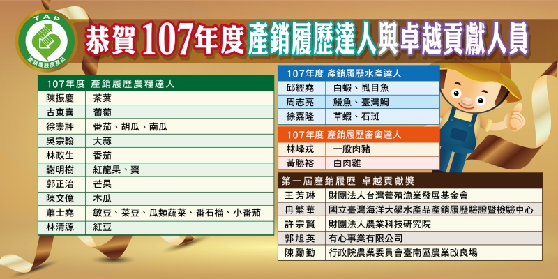 【恭賀 107年度產銷履歷達人與卓越貢獻獎人員】