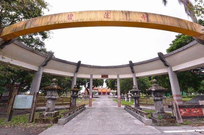 二次戰後因為去日本化運動,完整保留下來的神社寥寥無幾,旅行者只能透過一些遺跡去挖掘過往的歷史。碧蓮寺的前身為豐田神社,根據文資局資料興建於大正二年(一九一三),是移民村的信仰中心。神社在一九五八年受颱風侵襲毀壞,原地興建中式廟宇,除了供奉釋迦牟尼佛,不動明王也位列其中—中日神祇同處一室的狀況相當特別。