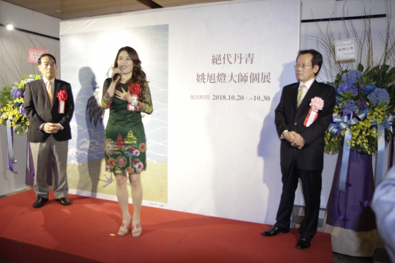 10/22當天下午更舉辦畫展開幕酒會,現場許多嘉賓蒞臨並致詞,如親民黨主席宋楚瑜、比漾廣場董事長潘慧珍、國立台灣戲曲學院校長張瑞濱、日本DRP株式會社會長山口隼人等。現場氣氛十分熱絡,也有許多賓客與姚旭燈大師共同交流藝術。