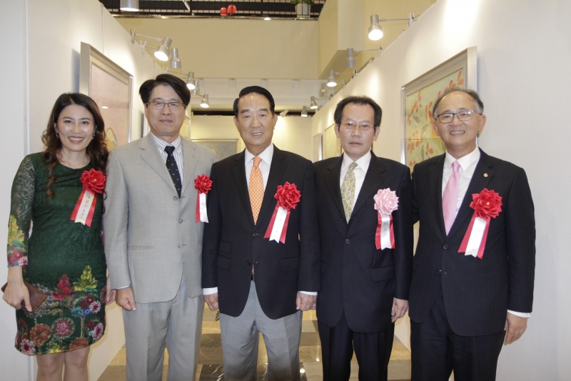 比漾廣場潘慧珍董事長、台灣民意基金會董事長游盈隆、親民黨主席宋楚瑜、畫家姚旭燈、東家建設董事長邱福地