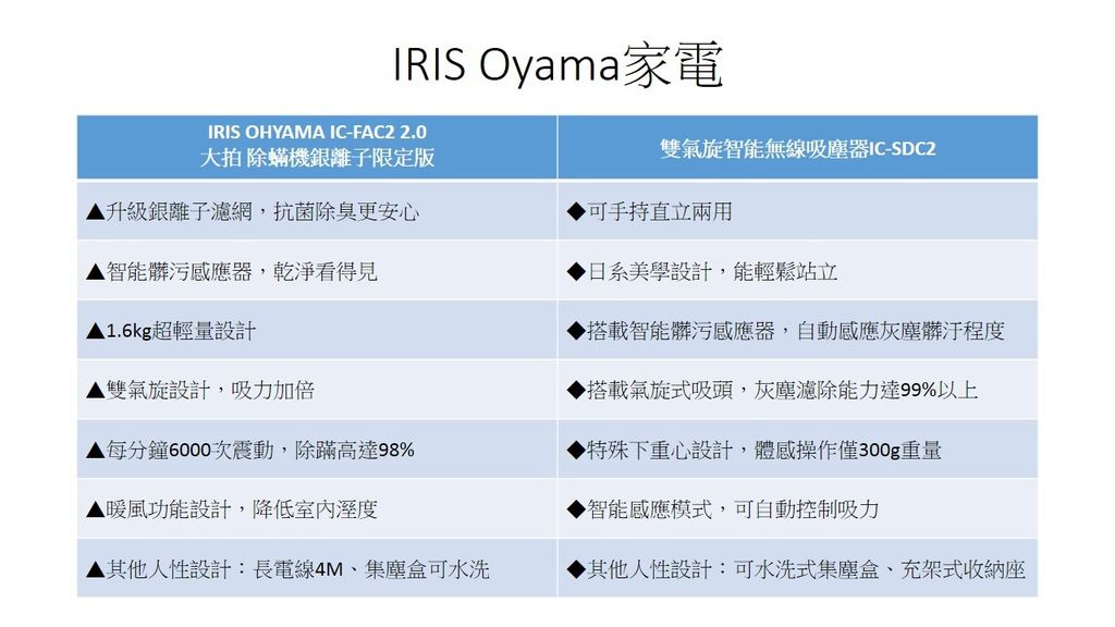 最後來幫大家複習一下這兩台IRIS Oyama家電的心動特色