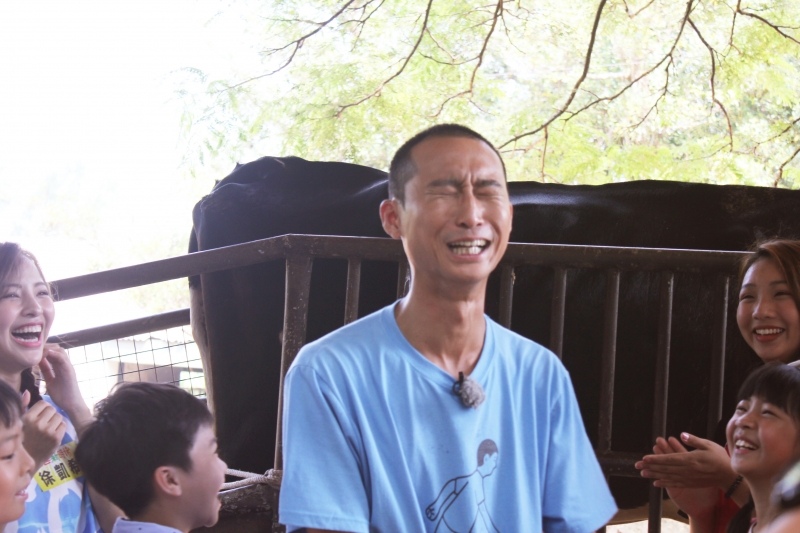 在節目中為了逗小朋友開心,阿翔在玩遊戲輸了要執行「小豬賽跑」,不惜穿上豬裝下場跑小豬賽道一圈,一旁的浩子則是拿起皮鞭做勢要抽打阿翔,看的小朋友是哈哈大笑,而在擠牛奶初體驗單元中,小朋友都小心翼翼且很溫柔的擠,只有浩子一個箭步上前,直接大力的握著牛的奶頭用力擠,太粗魯的動作和「指導員」牛奶姐姐教的不同,果不其然乳牛馬上做出反應,大力的往後一踢,嚇的浩子趕快收手,笑說被牛一腳踢到,可能要「七天後才能回家」,把他嚇到臉發青直呼:「動物真的很直接,不爽直接來的啦!」