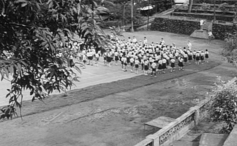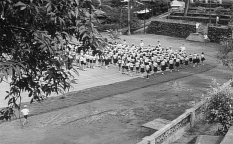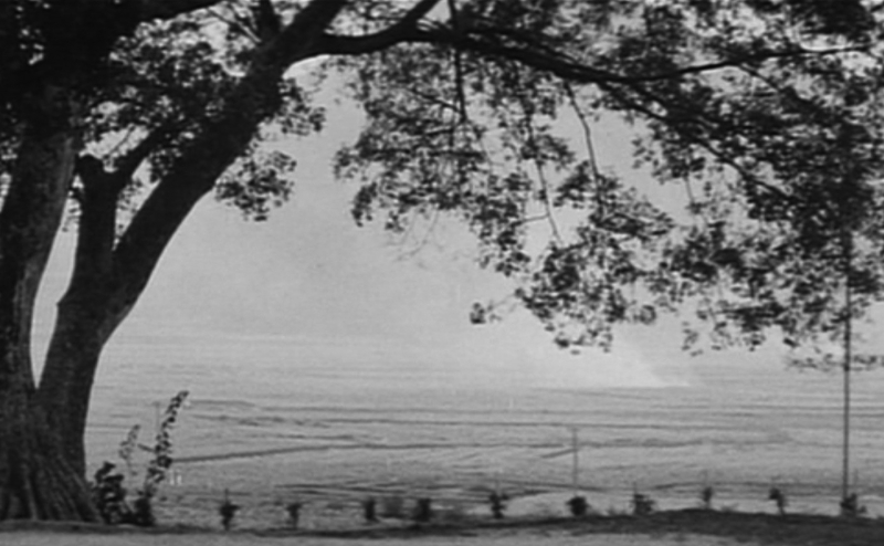 這場戲,特別是輕快敏捷又有效率的一鏡到底,在許多方面看來都非同凡響。首先,有別於前兩部作品的開場皆將明星演員置於中心,《在那河畔青草青》卻讓明星──也就是女主角──隱沒在眾多學童中,並未特別凸出。即使她僵硬的姿勢和濃妝豔抹與鏡頭裡其他事物格格不入──當然,比起前兩部女主角誇張的帽子來說,已低調許多──遠景構圖將她化為景物的一部分,而非安排明星站在前方、使景物成為背景。同樣地,特別的遠景創造出空間,讓場面調度更有深度。