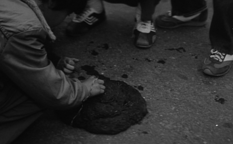 不幸的是,他們突發奇想的爆破裝置,卻因為是啞炮,讓不知情的男子安然走過,失望的孩子湊近臨時製作的土製炸彈周圍,這時爆竹竟突然爆炸,反而讓這些搗蛋鬼自食惡果。就在這時,跟那突然的糞便爆炸一樣令人吃驚,一聲俐落的「卡!」打斷了孩童玩耍的逗趣場景。原來剛剛整段畫面,都是電影中的電影──無法捕捉或是不許捕捉的畫面,竟被雙重拍攝──孩童的玩耍不再是玩樂,反而成了工作。