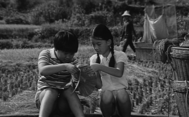 有趣的是,緊接著場景回到農民與孩童身上,農民正在午休,其中一人加入孩子玩樂。遠景和景深的運用,讓這樣巧妙的安排更顯動態。這兩樣特徵如今廣為人知,成為侯孝賢獨特的寫實主義美學,我們也能清楚看見,侯孝賢是在順從與對抗商業電影範式的脈絡下,發展出自己的視覺風格。