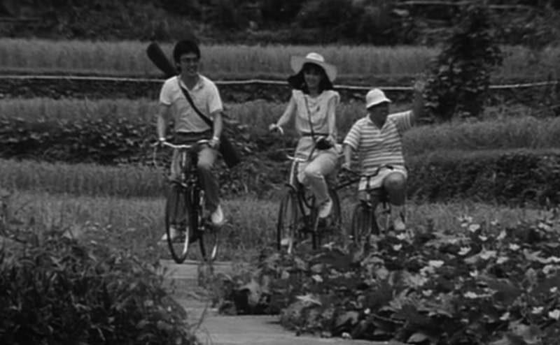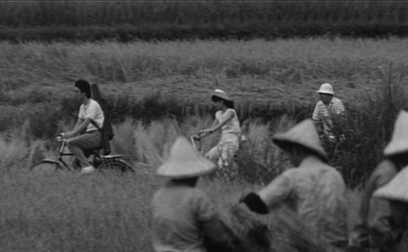 這場戲在工作與玩樂之間取得平衡,明星一入鏡,卻迅速打斷這樣的和諧。在一個大遠景中,鍾鎮濤與夥伴們騎著閃亮的單車,在鄉間小路上迎風疾駛,他們穿著時尚的便服,正要去河邊野餐。為了符合商業片的準則,鏡頭亦步亦趨地跟著明星,很快地,孩童與農民都消失了,村民玩樂與工作的空間,轉變成展示明星的舞台。